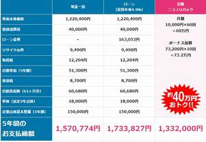 その場合、現金派と比べて差額は約60万円です。カードローン(3年)と比べると75万くらいです。